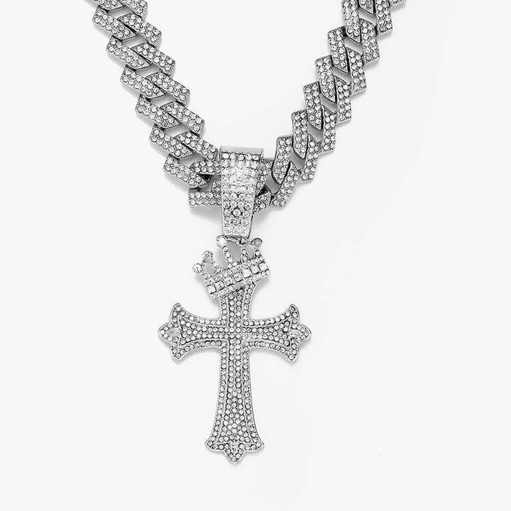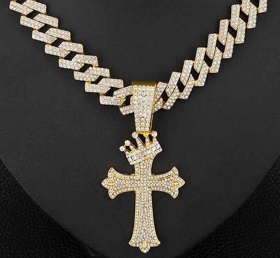 Be the first to review “White Gold Iced Out Crown Cross Pendant Hip Hop Alloy Crystal Cross Pendants for Rock Men Charm Jewelry” Cancel reply